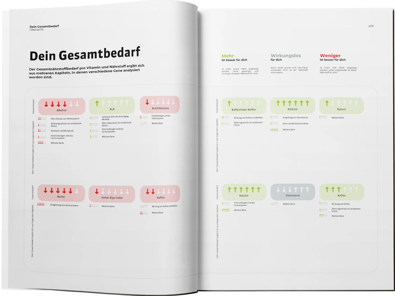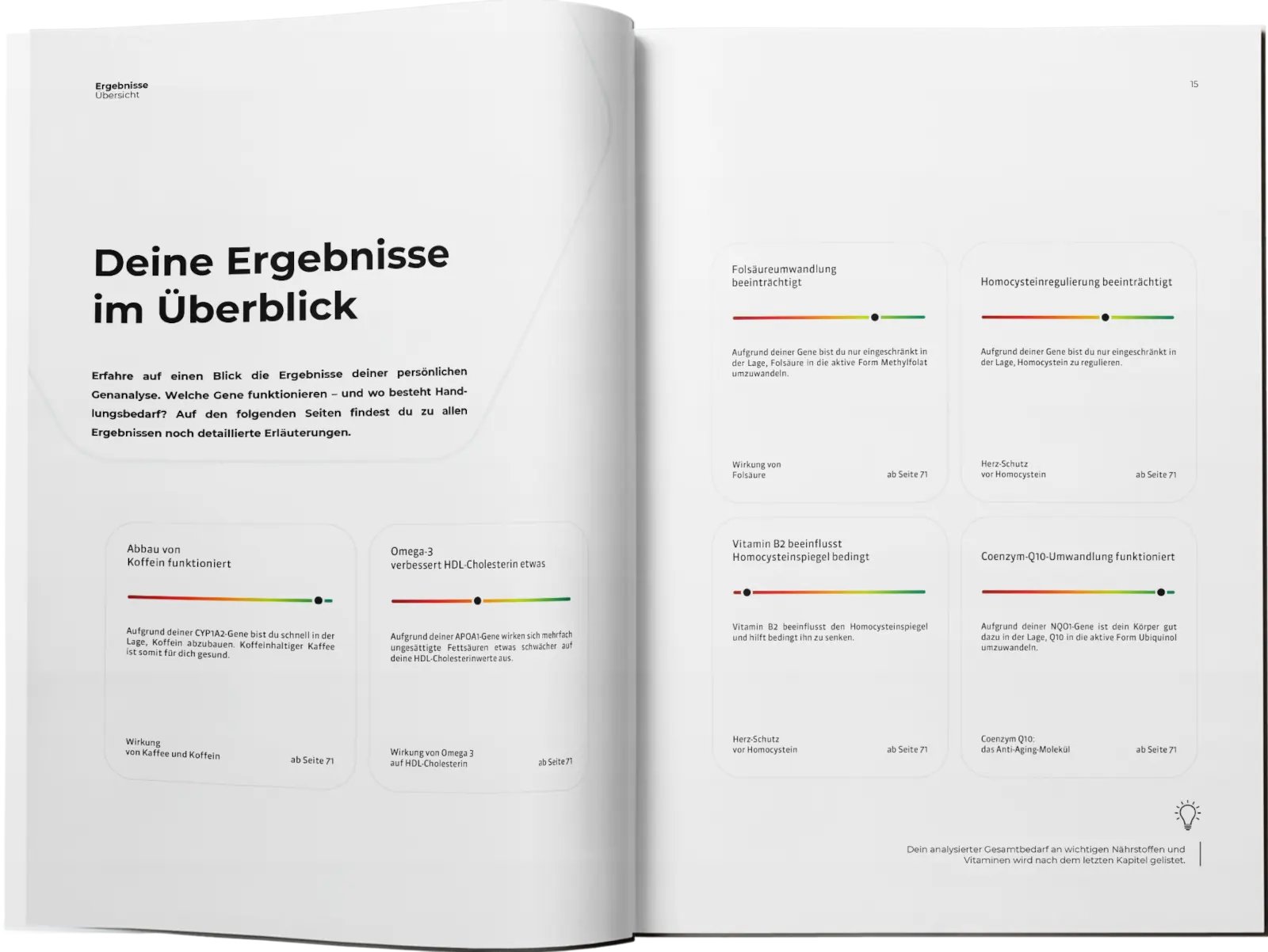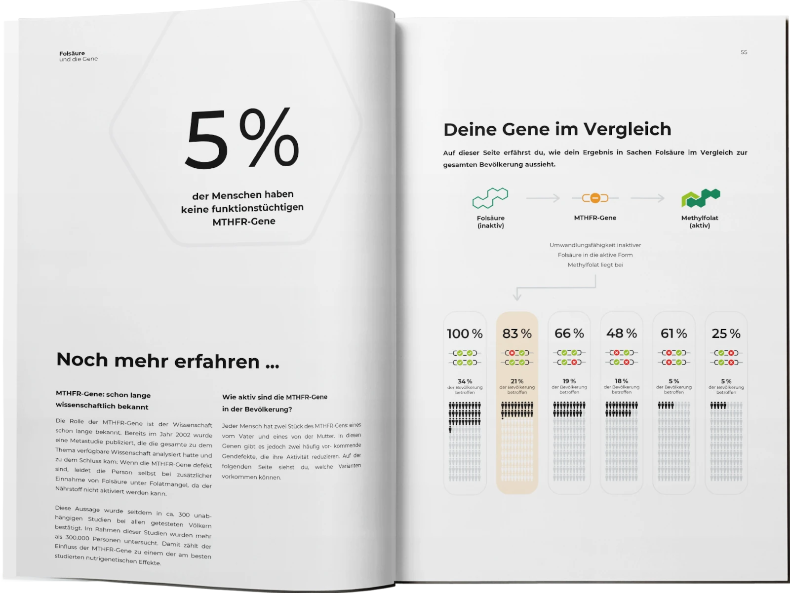 Somit gelten die genetischen Eigenschaften, die durch diese Analyse ermittelt werden, als wissenschaftlich bestätigt. Die aus diesen wissenschaftlichen Erkenntnissen abgeleiteten Anpassungen der Mikronährstoffdosierung oder Ernährungsempfehlungen erfordern für den eindeutigen wissenschaftlichen Nachweis den sogenannten Goldstandard – das sind randomisierte, placebokontrollierte Studien. Diese liegen bereits für Folsäure und Vitamin B2 vor, wurden jedoch noch nicht für alle genetischen Effekte in diesem Programm publiziert. Aus diesem Grund ist die genetische Anpassung der Mikronährstoffdosierung und die Lebensmittelbewertung als experimentelles Stadium zu verstehen.