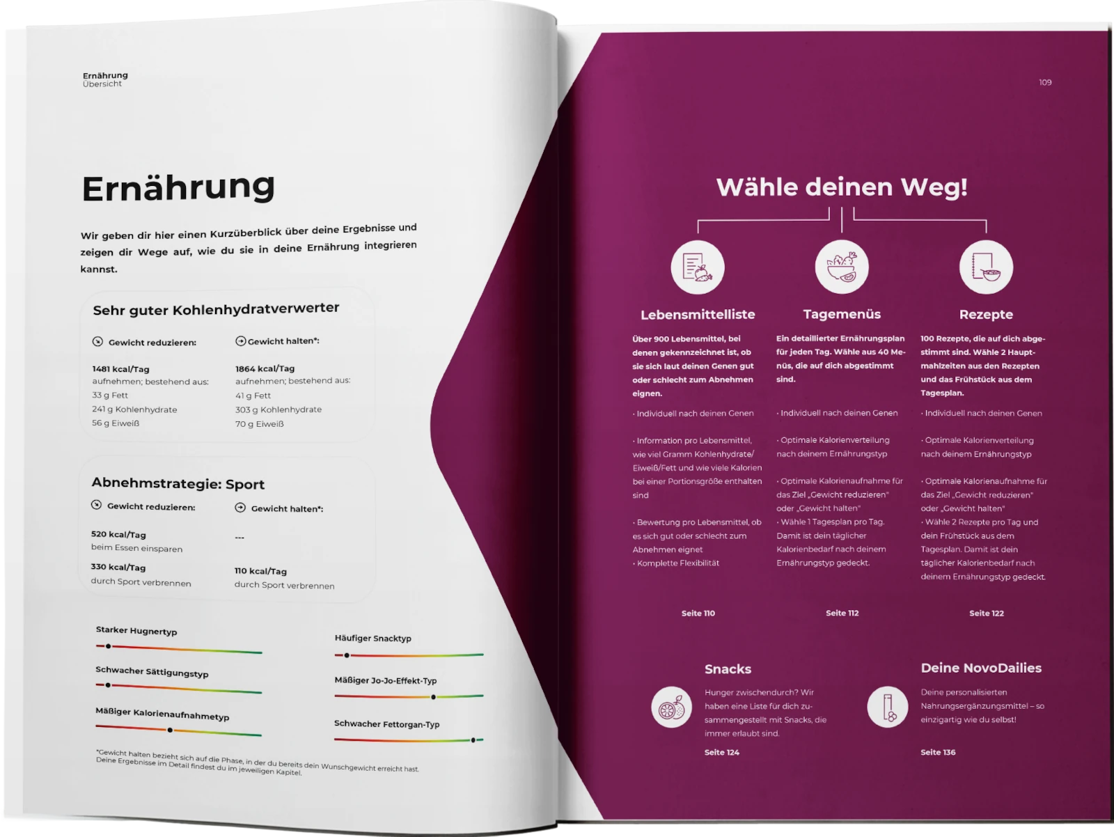 Deine optionalen Nahrungsergänzungsmittel (NovoDailies) werden somit wissenschaftlich an deinen Lebensstil, deine Blutwerte und zusätzlich experimentell an deine Gene angepasst – je nach Wahl deiner Analysen.
