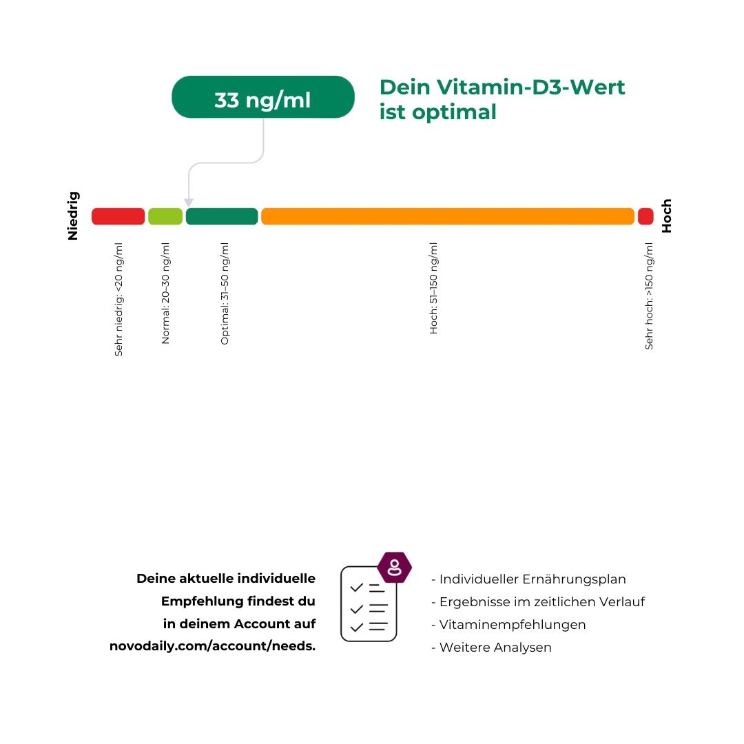 Erhalte Einblicke in wichtige Blutwerte wie Vitamin D3, B12, Magnesium und Cholesterin –